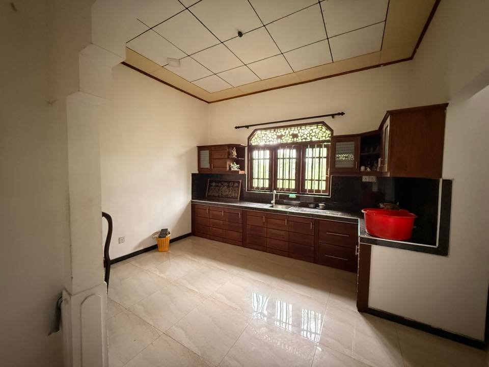 සම්පූර්ණ ටයිල් කළ නිවස, නවීන මුළුතැන්ගෙය සහ පුළුල් මිදුල සමඟින්.